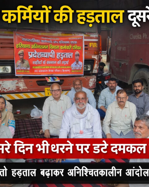दूसरे दिन भी धरने पर डटे दमकल कर्मी गुहला-चीका, 9 अप्रैल। नगर पालिका कर्मचारी संघ हरियाणा और हरियाणा अग्निशमन विभाग कर्मचारी यूनियन के आह्वान पर घोषित दो दिवसीय हड़ताल के दूसरे दिन