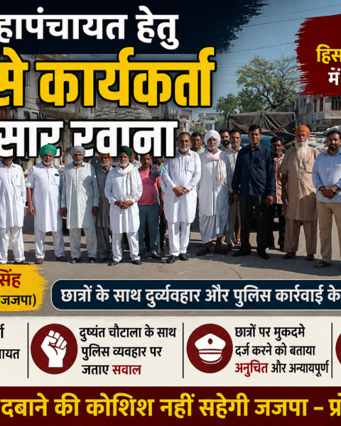 Guhla Cheeka से जत्था हिसार के लिए रवाना गुहला-चीका से जननायक जनता पार्टी और उसकी छात्र इकाई के सैकड़ों कार्यकर्ता हिसार में आयोजित छात्र महापंचायत के लिए रवाना हुए। नेतृत्व जजपा के
