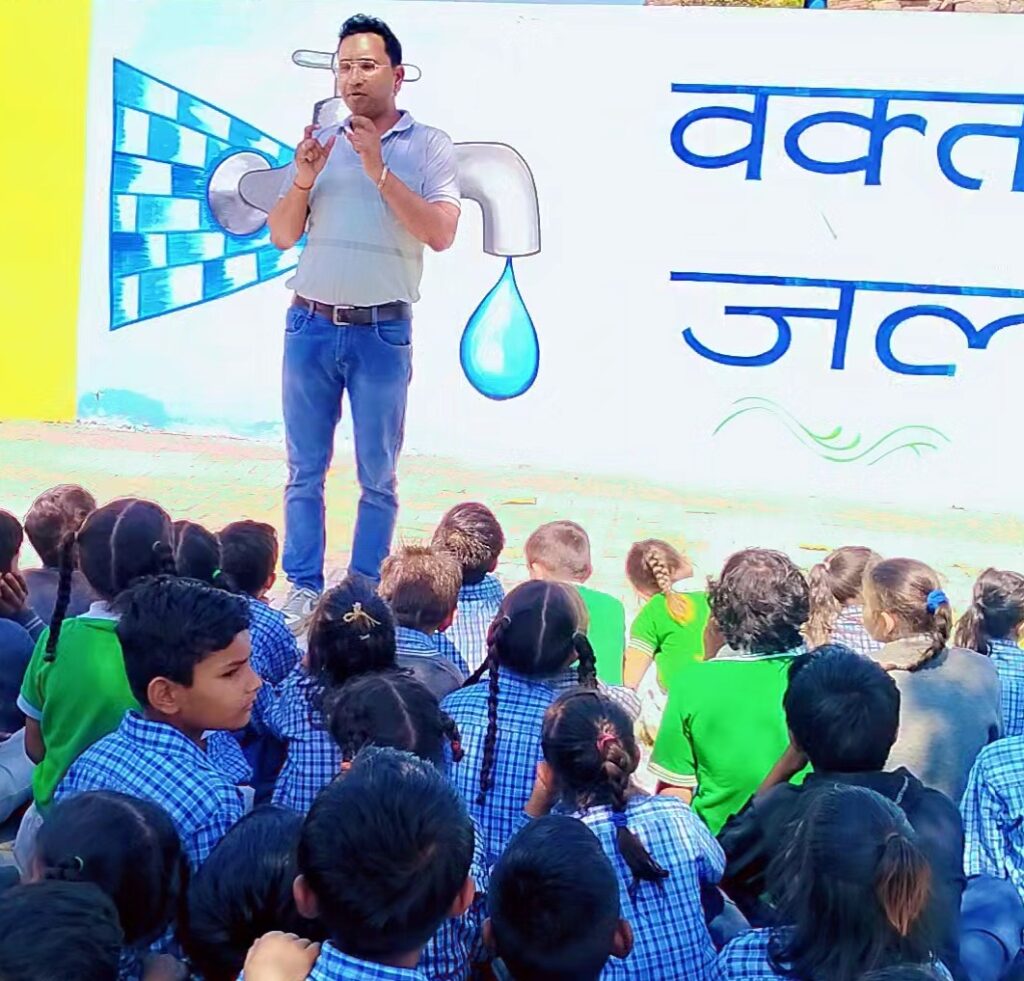 Teacher Surjeet Singh educated students on simple ways to conserve water in daily life. He advised them to turn off taps while brushing their teeth and to use a bucket or mug instead of running water in toilets to prevent unnecessary wastage.