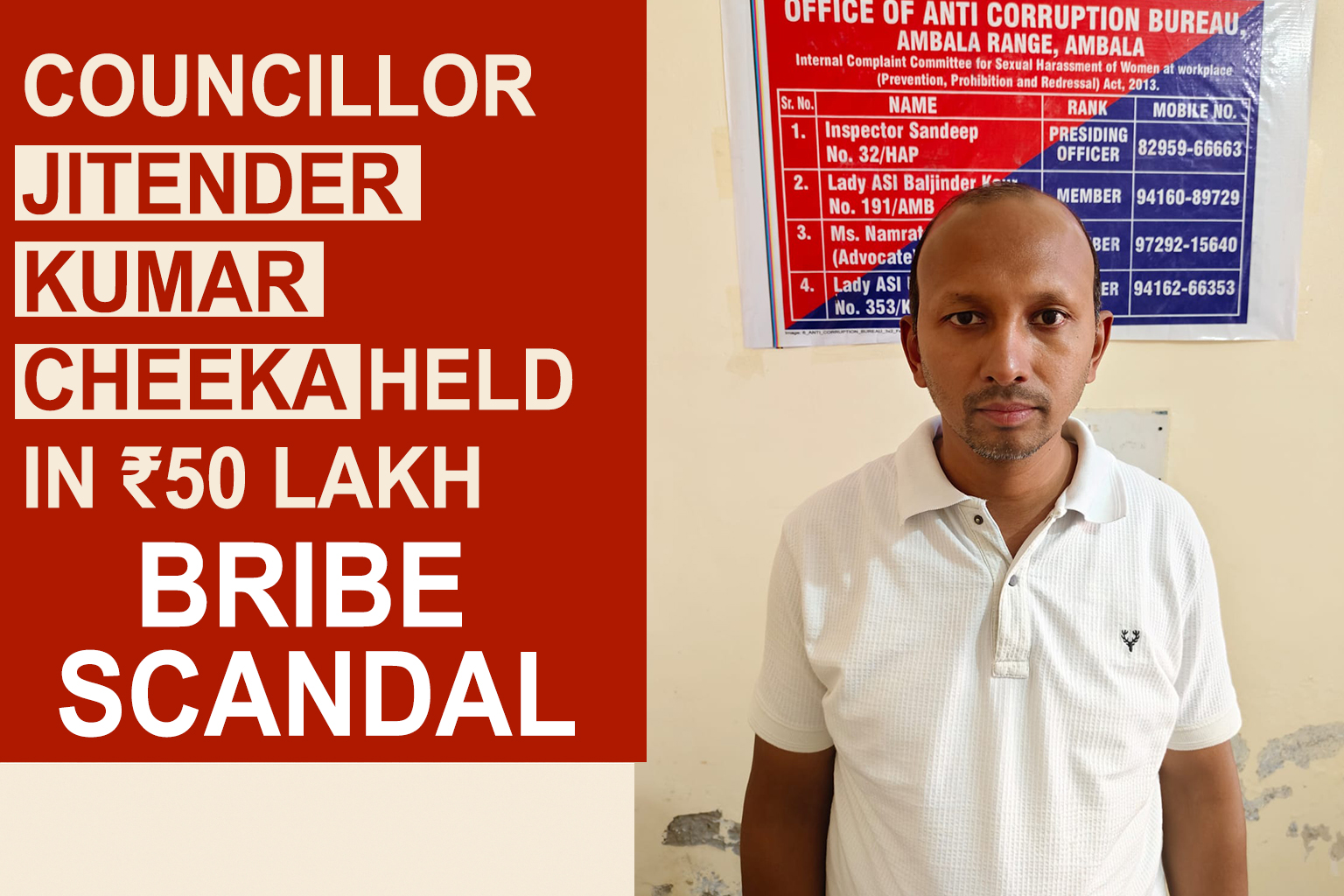 Complainant Vijay Kumar, who is known to be close to Vice-Chairperson Pooja Sharma, approached the Anti-Corruption Bureau Ambala with a formal complaint. He stated that during discussions over the no-confidence proposal, Councillor Jitender, along with two other councillors, contacted him.