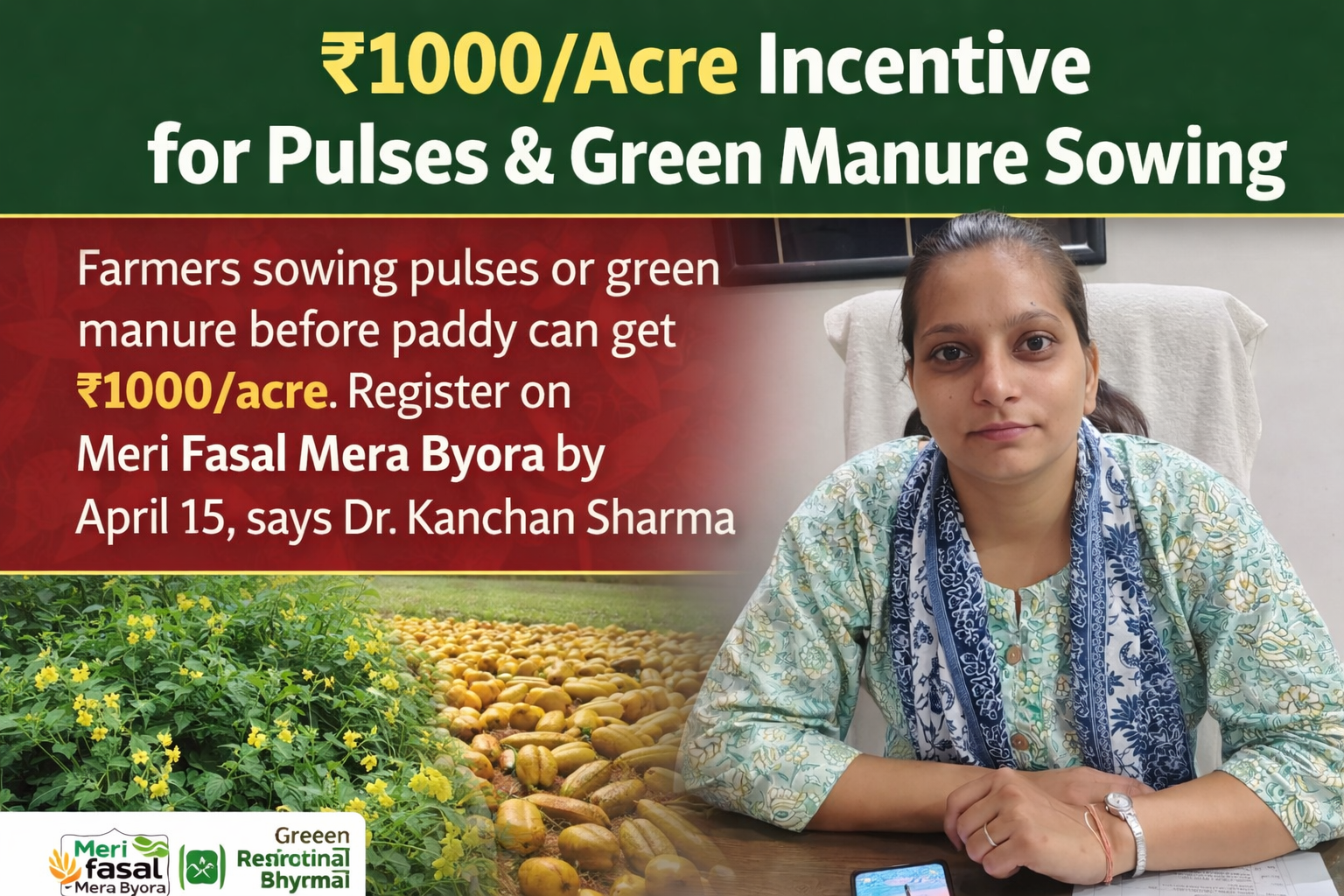 ₹1000/Acre Incentive for Pulses & Green Manure Sowing