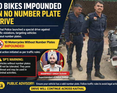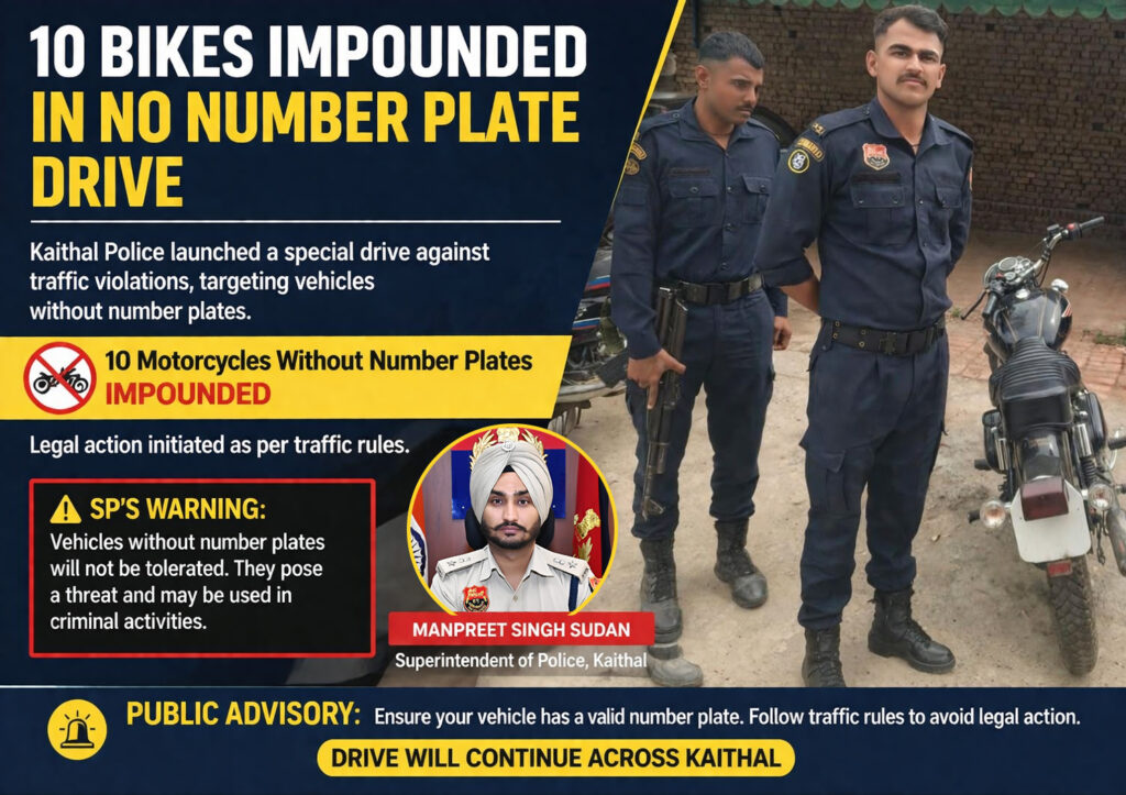 Kaithal Police Impounded 10 Bikes in No Number Plate Drive