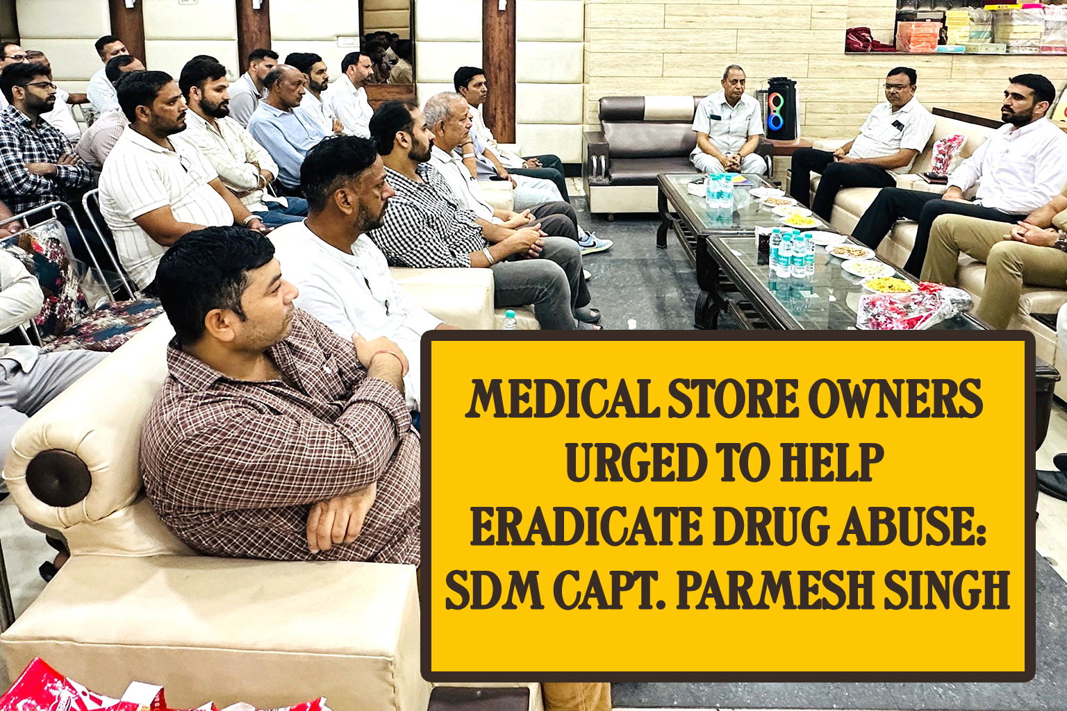 SDM Capt. Parmesh Singh has appealed to medical store owners to fully cooperate with the district administration and police in the mission to eradicate drug abuse from society. He emphasized that medical stores must not sell intoxicating medicines without a valid prescription from a registered doctor. Along with this, every medical store should maintain an NRX register and install CCTV cameras to ensure proper monitoring.