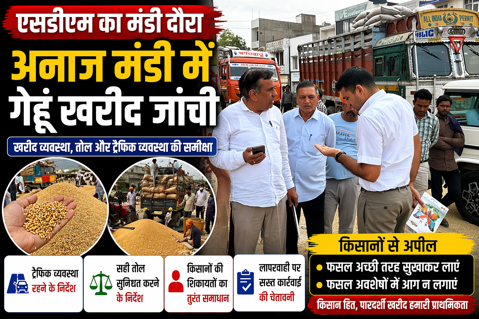 SDM Guhla Cheeka ने किसानों से आग्रह किया कि वे गेहूं की फसल को अच्छी तरह सुखाकर मंडी में लाएं, ताकि बिक्री में कोई दिक्कत न हो। साथ ही फसल अवशेषों में आग न लगाने की अपील करते हुए पर्यावरण और सुरक्षा का ध्यान रखने को कहा।