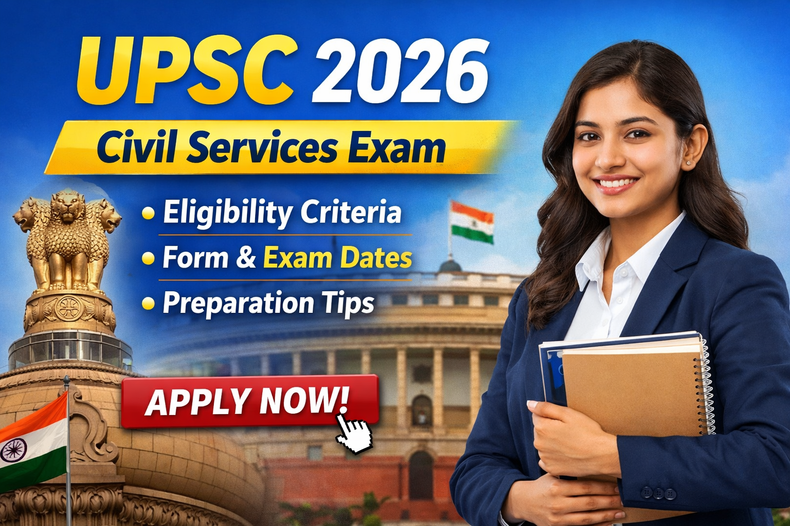 The UPSC (Union Public Service Commission) Civil Services Examination (CSE) is one of Indiaโs most prestigious national-level exams. It selects candidates for top government roles like IAS, IPS, IFS and other central services. Every year, thousands of aspirants prepare rigorously to clear this multi-stage examination. In this article, weโll cover the eligibility criteria, form fill dates for 2026, expected exam dates, and official links to apply so you donโt miss out on crucial deadlines.